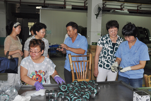 2015年8月5日下午,中華全國總工會女職工委員會常委周樂紅、倪燕芳帶領全國總工會“單獨兩孩”政策專題調研組在省總工會、市總工會相關領導陪同下到公司調研。在公司工會主席張泰生、常務副主席洪麗玲陪同下,調研組先深入車間一線生產現場走訪參觀,實地了解一線女職工工作環境與狀況,并同女職工親切交談,了解女職工勞動保護、特殊權益保護等相關問題。