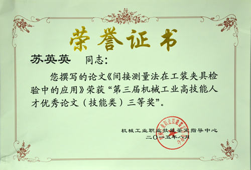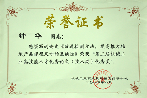近日,第三屆機械工業高技能人才優秀論文評選工作圓滿結束。此次評選由機械工業職業技能鑒定指導中心主辦,行業協會、企業專家組成的評審專家委員會對140余篇論文進行了專業評審。公司員工蘇英英撰寫的《間接測量法在工裝夾具檢驗中的應用》獲得技能類論文三等獎,鐘華撰寫的《改進檢查方法,提高推力軸承產品球徑尺寸的互換性》獲得技術類論文優秀獎。此外,公司技能鑒定站站長洪麗玲也榮獲機械工業高技能人才培養優秀組織者。
