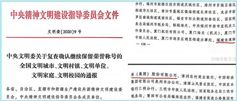 今后,公司將持續(xù)堅持以習近平新時代中國特色社會主義思想武裝頭腦,深入學習貫徹落實黨的十九屆五中全會精神,不斷增強“四個意識”,堅定“四個自信”,做到“兩個維護”,積極踐行社會主義核心價值觀,牢記初心使命,繼續(xù)鞏固和發(fā)展全國文明單位創(chuàng)建成果,強化文明創(chuàng)建頂層設計,積極爭創(chuàng)第七屆全國文明單位,為漳州創(chuàng)建全國文明城市、加快推進新時代富美新漳州建設,奮力當好新時代新福建建設先鋒、新增長極和重要引擎作出更大貢獻!