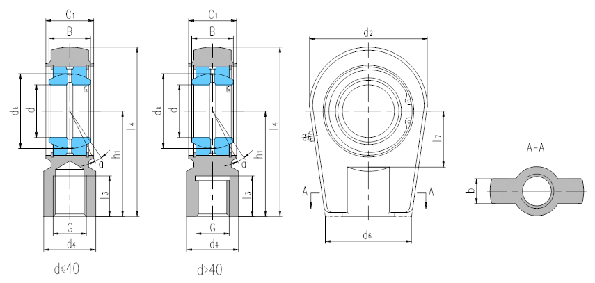 若是左旋螺紋,軸承型號和螺紋標(biāo)記需加“L”和“左”,例如:SILRN40ES  M35×1.5左-6H。