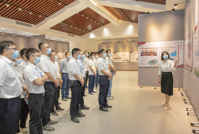 2022年11月1日,龍軸集團(tuán)組織業(yè)務(wù)主辦以上干部及員工代表160余名,由集團(tuán)黨委委員、常務(wù)副總經(jīng)理鄭長虹,黨委副書記劉明福,黨委委員、紀(jì)委書記、監(jiān)察專員王志劼,黨委委員、副總經(jīng)理張逸青,黨委委員、副總經(jīng)理林通靈,財務(wù)總監(jiān)曾四新,總工程師林振元帶隊,分三批前往參觀漳州市國資委主辦的“國企發(fā)展這十年成就展”。
