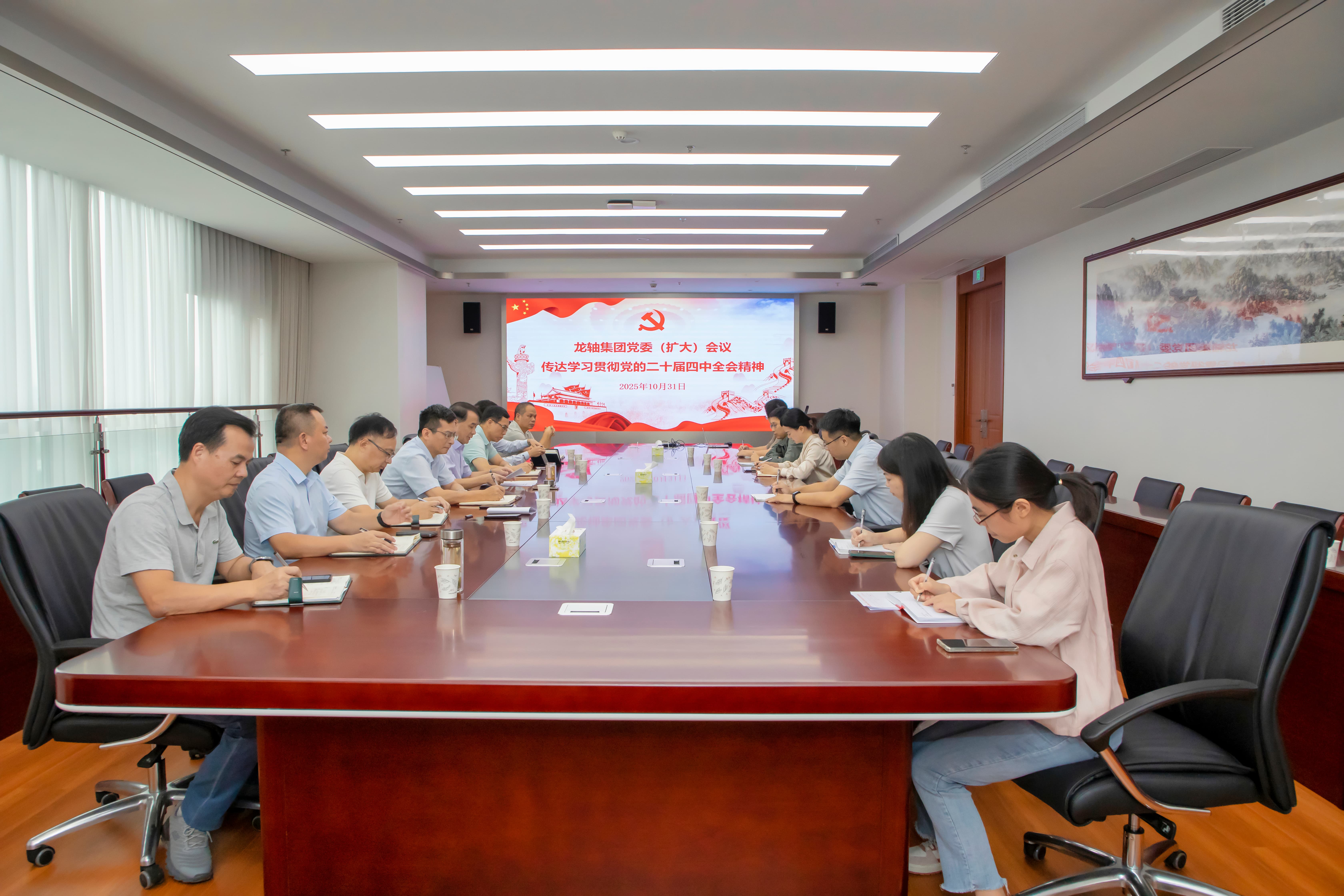 10月31日,龍軸集團召開黨委(擴大)會議,深入學習貫徹習近平總書記在黨的二十屆四中全會上的重要講話和全會精神,貫徹落實省委、市委常委會(擴大)會議及市國資委黨委(擴大)會議精神,研究部署公司貫徹落實措施。集團公司黨委書記、董事長陳晉輝主持會議并講話。