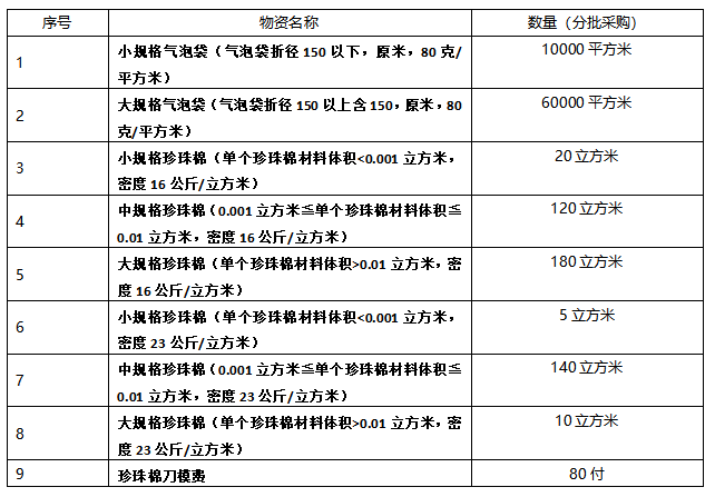 龍軸集團采購氣泡袋、珍珠棉招標公告