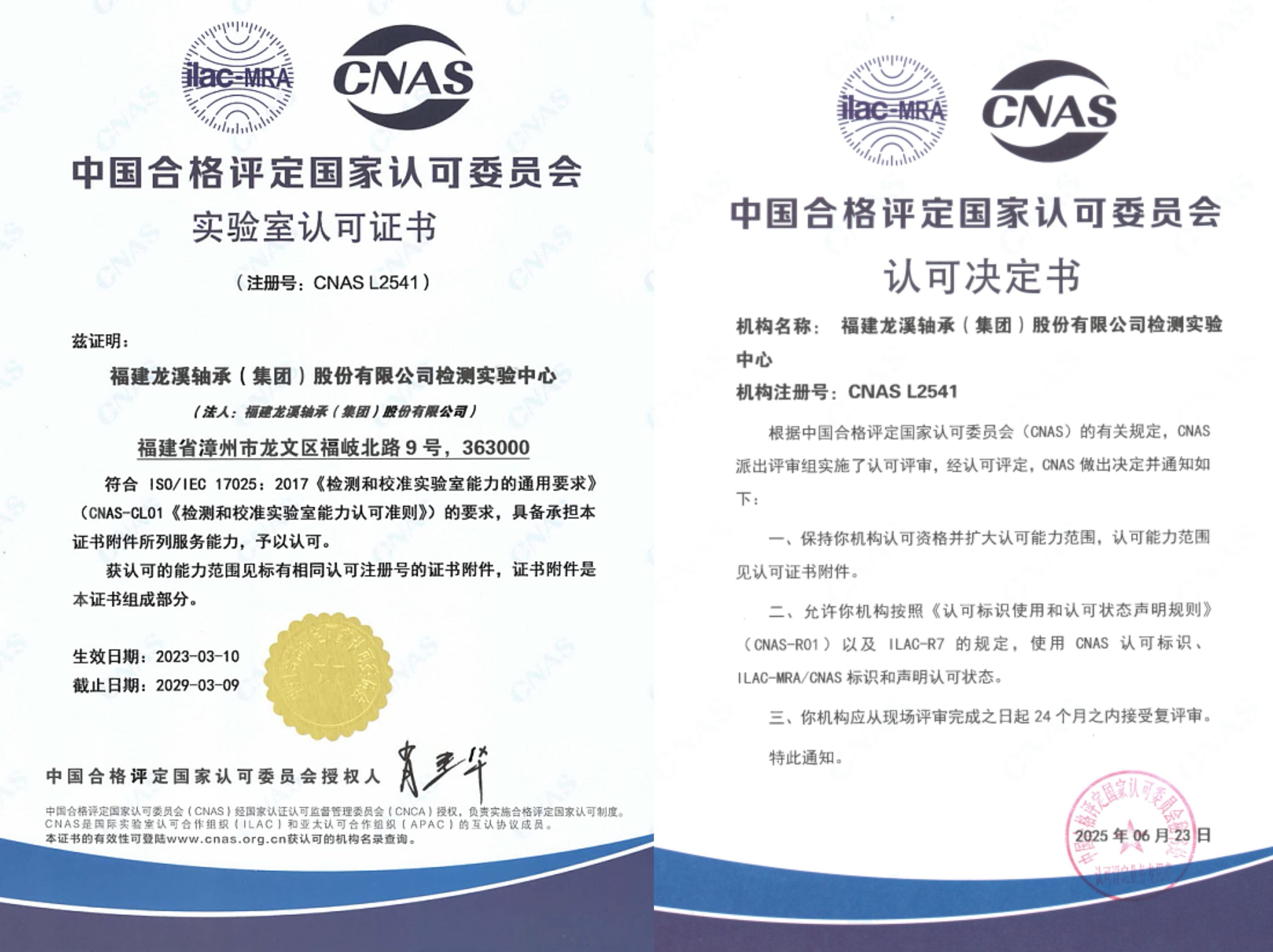 近日,龍軸集團(tuán)檢測實驗中心順利通過中國合格評定國家認(rèn)可委員會(CNAS)擴(kuò)項評審,獲得認(rèn)可決定書和實驗室認(rèn)可證書,標(biāo)志著公司在軸承可靠性驗證、材料微觀分析等核心技術(shù)領(lǐng)域?qū)崿F(xiàn)重大突破,已構(gòu)建覆蓋從材料到產(chǎn)品的檢測服務(wù)體系,檢測能力達(dá)到國內(nèi)先進(jìn)水平。