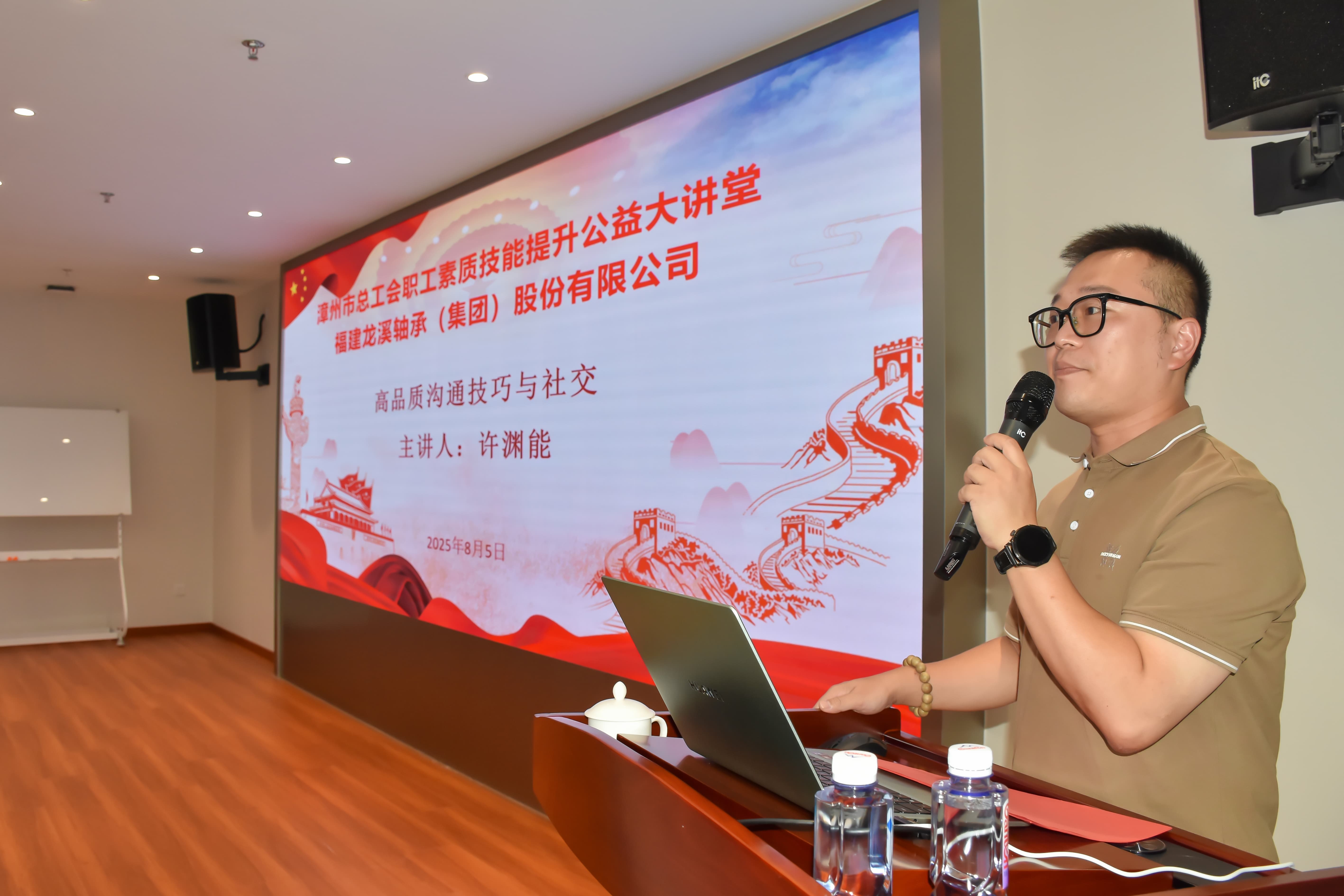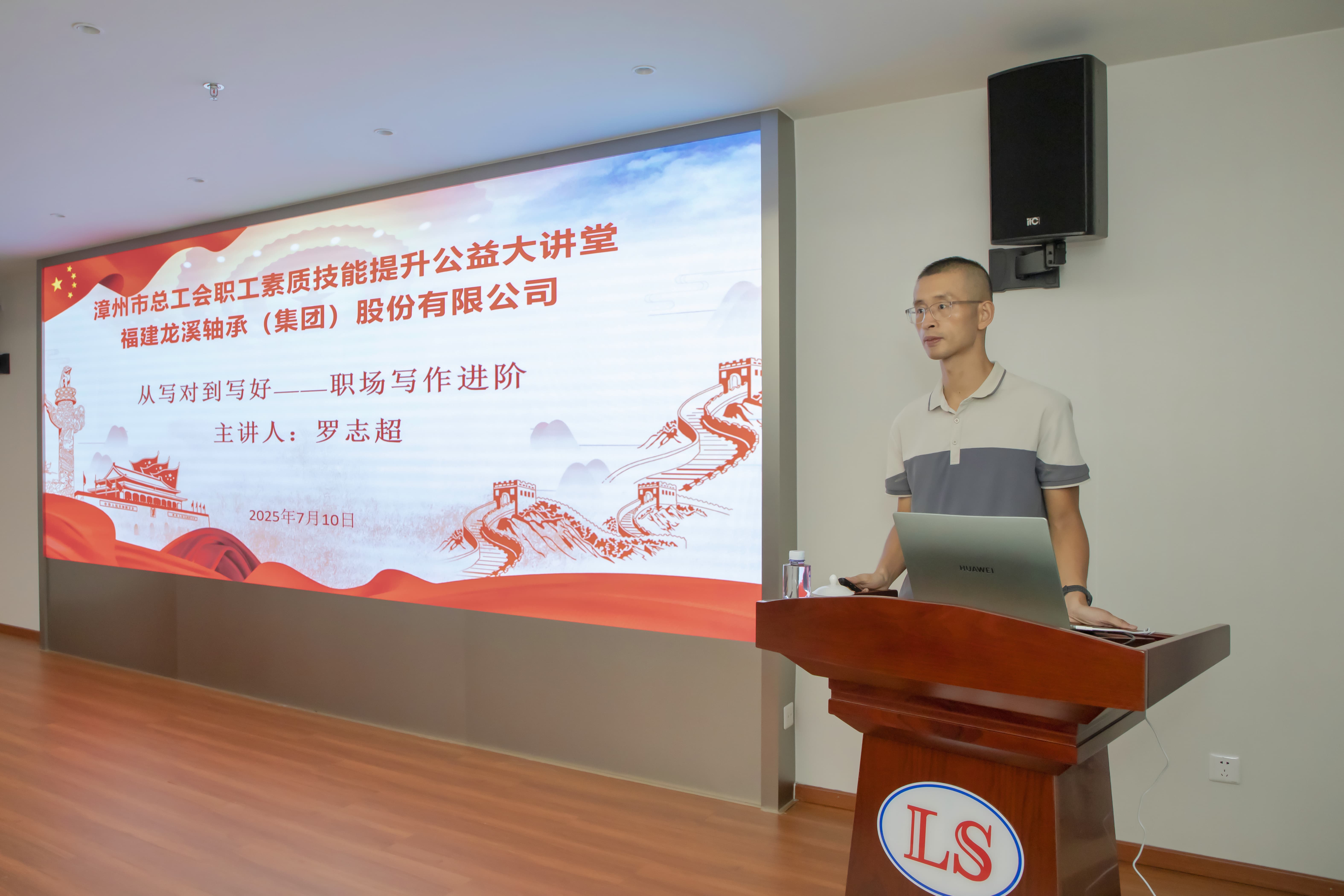 為進(jìn)一步提升員工綜合素養(yǎng),助力龍軸集團(tuán)高質(zhì)量發(fā)展。在漳州市總工會的大力支持下,公司于7-8月組織兩場員工素質(zhì)提升公益大講堂專題培訓(xùn),邀請閩南師范大學(xué)新聞傳播學(xué)院副教授、碩士生導(dǎo)師羅志超和漳州理工職業(yè)學(xué)院衛(wèi)生健康學(xué)院講師許淵能分別講授“從寫對到寫好-職場寫作進(jìn)階”和“高品質(zhì)溝通技巧與社交”課程,相關(guān)職能部門人員參加培訓(xùn)。