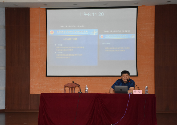 講座中,曾堅(jiān)圍繞 “國有企業(yè)的使命擔(dān)當(dāng)對(duì)領(lǐng)導(dǎo)人員政治素質(zhì)與業(yè)務(wù)能力提出了新要求”和“采取切實(shí)措施全面提高國企領(lǐng)導(dǎo)人員的政治素質(zhì)與業(yè)務(wù)能力”兩大方面進(jìn)行講授。他指出,黨的十九大明確提出要努力培育一大批具有全球競爭力的世界一流企業(yè),為國有企業(yè)改革發(fā)展指明了方向。一支具有良好政治素養(yǎng)與精湛業(yè)務(wù)能力的國有企業(yè)領(lǐng)導(dǎo)人員隊(duì)伍,既是企業(yè)核心競爭力的重要組成部分,也是國有企業(yè)完成新時(shí)代使命擔(dān)當(dāng)?shù)臎Q定因素和重要保證。結(jié)合2018年5月11日中央深改委第二次會(huì)議討論通過的《中央企業(yè)領(lǐng)導(dǎo)人員管理規(guī)定》和國有企業(yè)領(lǐng)導(dǎo)人員隊(duì)伍建設(shè)“二十字方針”要求,通過列舉豐田、華潤、中鐵、中興等公司案例,他詳細(xì)闡述了提高國企領(lǐng)導(dǎo)人員的政治素質(zhì)與業(yè)務(wù)能力的有效做法。一是堅(jiān)持黨管干部原則,加強(qiáng)對(duì)國有企業(yè)領(lǐng)導(dǎo)人員的培養(yǎng)鍛煉;二是堅(jiān)持嚴(yán)管和厚愛相結(jié)合,明確國有企業(yè)領(lǐng)導(dǎo)人員的責(zé)任;三是明確企業(yè)中黨管干部的具體內(nèi)容和工作程序,切實(shí)加強(qiáng)對(duì)國有企業(yè)領(lǐng)導(dǎo)人員的培養(yǎng)、選拔、教育、激勵(lì)、監(jiān)督與管理,努力造就一支中國特色現(xiàn)代國有企業(yè)企業(yè)家隊(duì)伍。