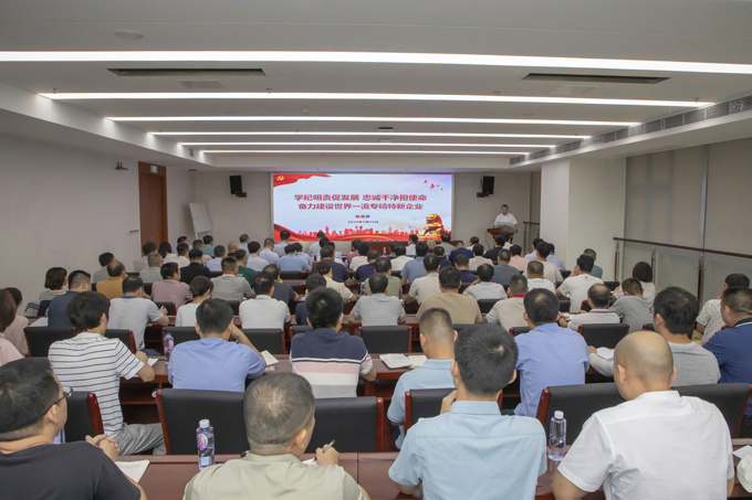 6月26日,集團黨委書記、董事長陳晉輝以《學(xué)紀明責(zé)促發(fā)展、忠誠干凈擔(dān)使命,奮力建設(shè)世界一流專精特新企業(yè)》為題講授專題黨課。集團高管、中層管理人員、權(quán)屬企業(yè)高管參加。