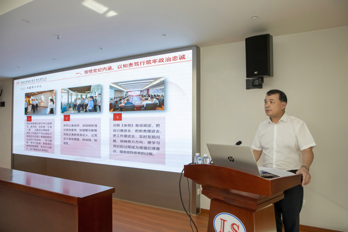 陳晉輝從“領(lǐng)悟黨紀內(nèi)涵,以知責(zé)篤行筑牢政治忠誠”“明晰紀律要求,以明責(zé)敢為落實主體責(zé)任”“涵養(yǎng)清正風(fēng)氣,以擔(dān)責(zé)奮進推動公司發(fā)展”等三方面進行了深入闡述。他指出,黨的紀律是黨的各級組織和全體黨員必須遵守的行為規(guī)則,全面深入學(xué)習(xí)黨的紀律是每一名黨員和領(lǐng)導(dǎo)干部必須完成的政治任務(wù)。公司黨員干部要堅持“學(xué)”在先、“悟”在深、“踐”在實,真正領(lǐng)會黨的紀律的實質(zhì)和內(nèi)在要求,進一步強化紀律意識、加強自我約束、提高免疫能力,增強政治定力、紀律定力、道德定力、抵腐定力。
