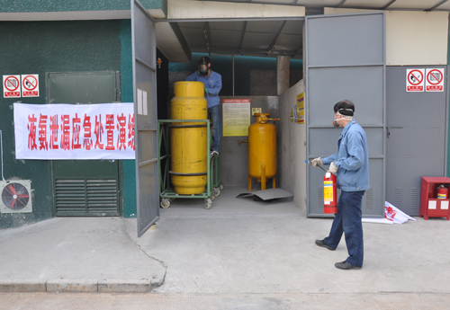 2013年3月14日下午,公司安全管理部按危險化學品危險源監控管理要求,在藍田熱處理車間丙烷、液氨供氣點組織開展 “丙烷泄漏應急處置”、“液氨泄漏應急處置”兩場演練。