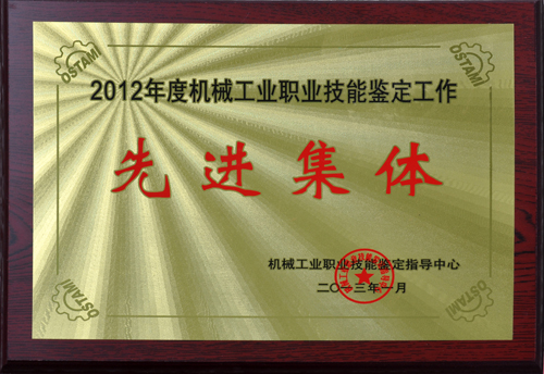 2012年度全國機械行業職業技能鑒定工作總結表彰大會于2013年1月16日~22日在昆明召開,來自全國機械行業職業技能鑒定行業分中心、地方分中心、鑒定站、點、職業院校以及培訓基地160余家單位的領導、專家180余人出席了會議。會議表彰了2012年度機械工業職業技能鑒定工作先進集體、優秀管理者和先進工作者,公司職業技能鑒定站榮獲“2012年度機械工業職業技能鑒定工作先進集體”榮譽稱號。