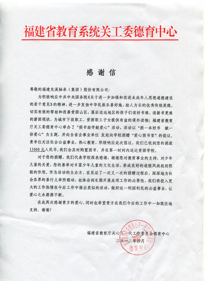 當前位置:福建龍溪軸承(集團)股份有限公司?-?專項工作?-?創建全國文明單位