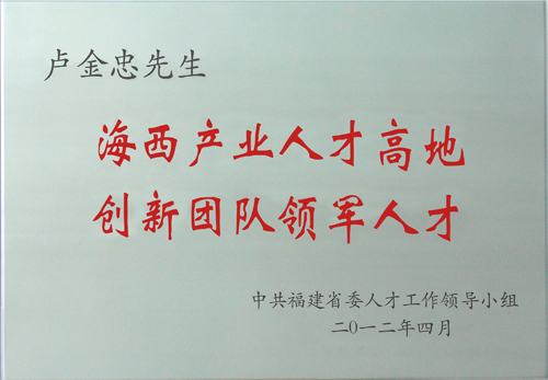 | 海西產(chǎn)業(yè)人才高地 創(chuàng)新團隊領(lǐng)軍人才(盧金忠) | 福建省省人才工作領(lǐng)導(dǎo)小組 | ||