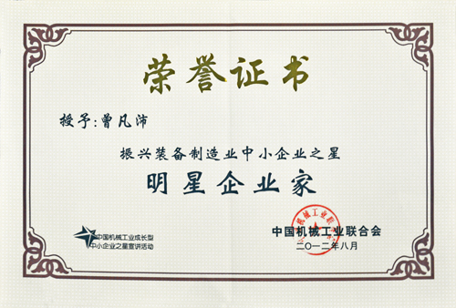 | 振興裝備制造業(yè)中小企業(yè)之星明星企業(yè)家 | 中國機械工業(yè)聯(lián)合會 | ||