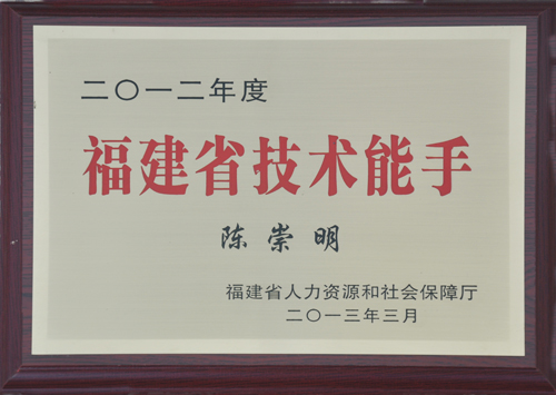 | 福建省技術(shù)能手(陳崇明) | 福建省人力資源和社會保障廳 | ||