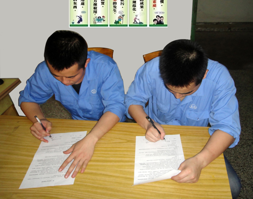 落實安全生產責任制是考核我司安全生產標準化和企業(yè)安全文化建設工作的一項重要指標,2013年初,公司根據各單位實際編制了各子公司安全生產責任書、各部門安全生產責任書、各車間安全生產責任書及班組、員工安全生產責任(狀)范本發(fā)放到各部門、車間及班組征求意見。并從2月底到3月上旬陸續(xù)完成公司與各子公司、公司與車間,公司與部門、車間與班組、班組與員工安全生產責任書(狀)的簽訂,通過層層簽