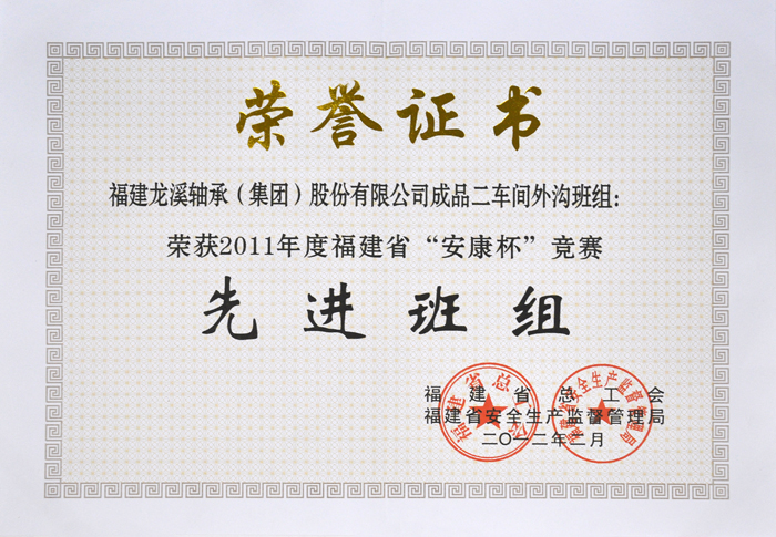 2011年度省安康杯競賽先進班組(成二外溝)