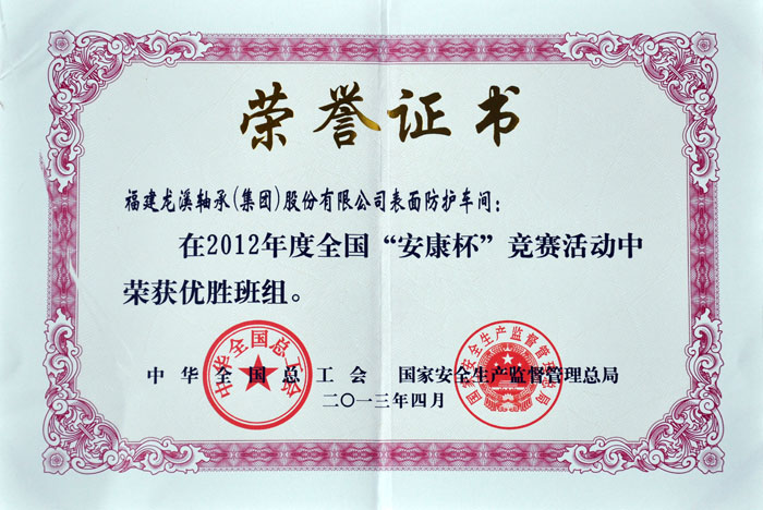 2012年度全國安康杯競賽優(yōu)勝班組(表面防護)