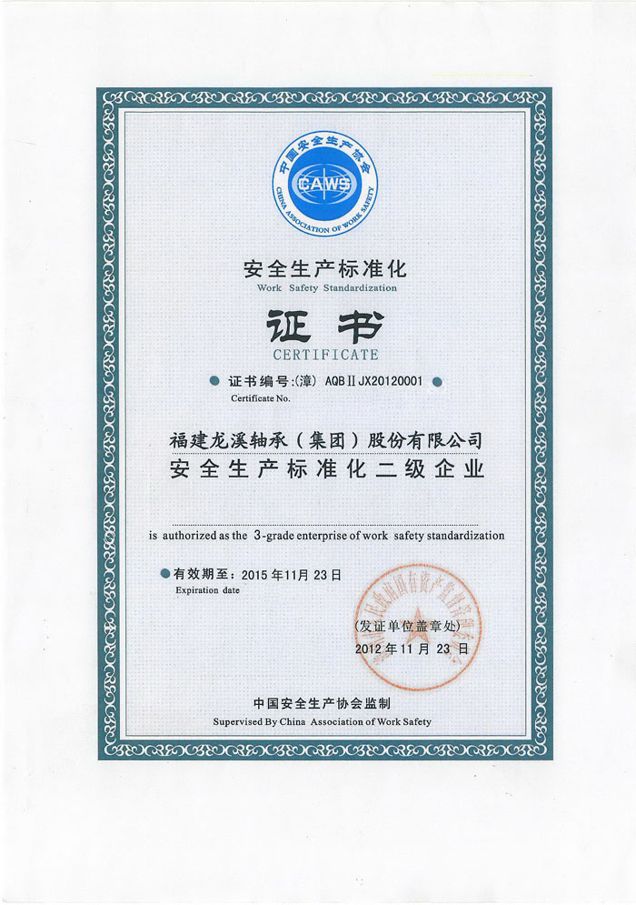 安全生產(chǎn)標準化二級企業(yè)證書